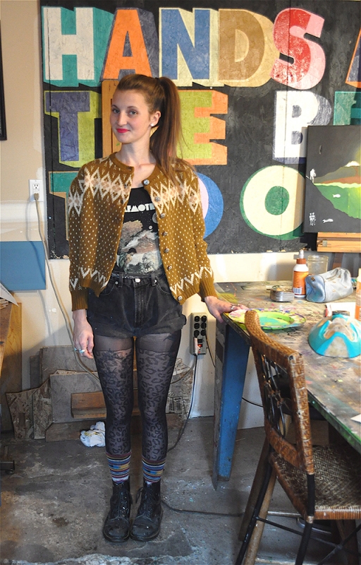 No matter what Ashley is doing, she can always be found in a pair of boots. “I am obsessed with boots, I LOVE a good pair of boots,” she says. Her growing collection ranges from vinyl creepers to beat-up combat boots to her three pairs of equally unique Doc Martens.