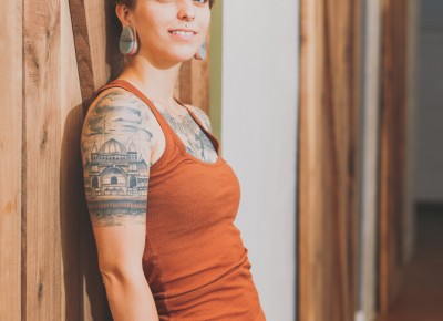 “I like that I have things that will completely turn heads,” says Marriott. “To a lot of people I have a lot of tattoos, and to me I don’t. To a lot of people I have very large stretched lobes, but to me I don’t—but I’m so little that it looks like a lot going on, and I will turn heads when I don’t mean to. So I like being subtle most of the time unless it’s something where I can be really flashy or I want to be flashy.”