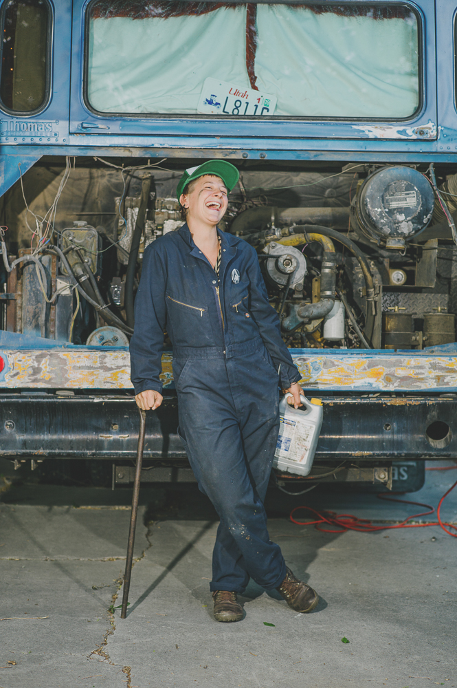 “One of my friends happened to be selling this 40-foot 1980 Thomas Built school bus,” says Longino, “at a very opportune moment in time. And the bus has some history: It was a school bus initially from the start, and then about 12 years ago, JR bought it and put a veggie oil kit in it, so it can run on waste vegetable oil. And it’s been to Burning Man a couple times, and it was kind of the party bus for Desert Rocks Festival and Paulo Palooza, which are two regional events.” Photo: @clancycoop