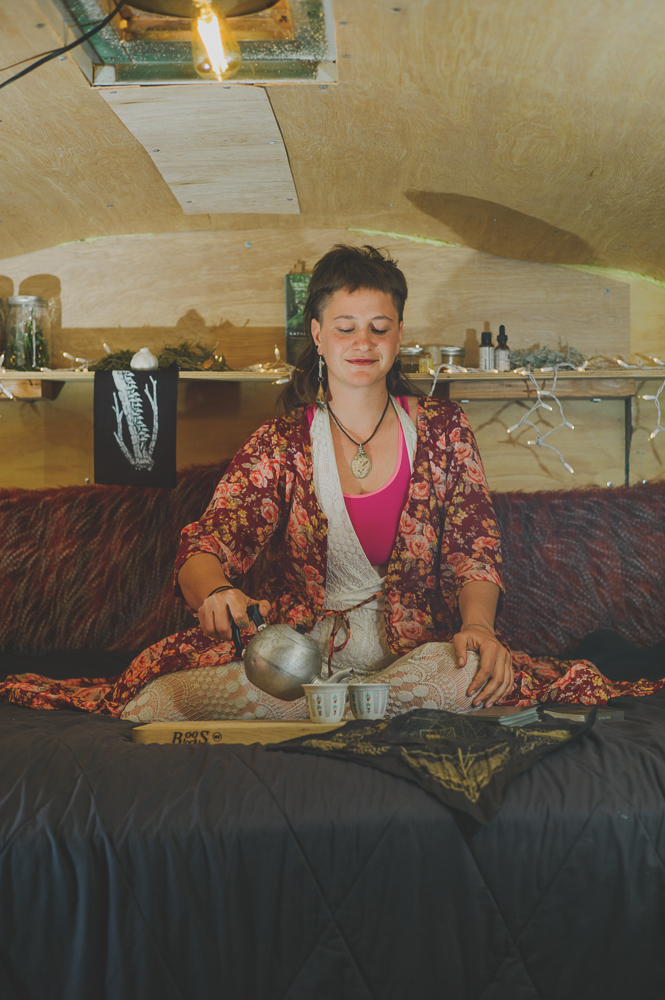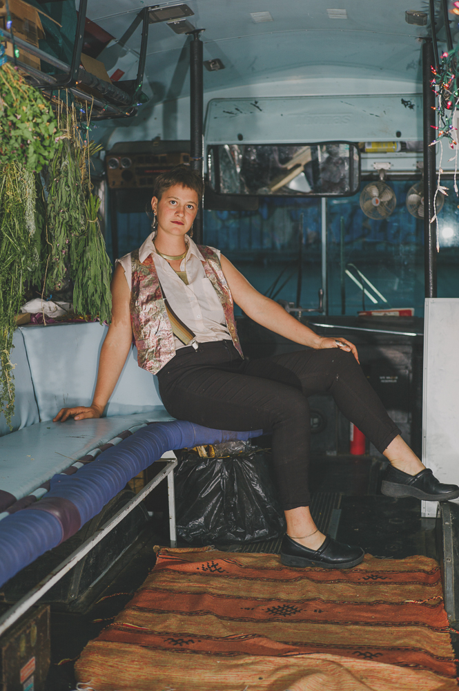 This month’s photos were shot at Erika’s bus, which she is turning into an herbal apothecary botanical classroom and tearoom geared toward femme and queer empowerment.