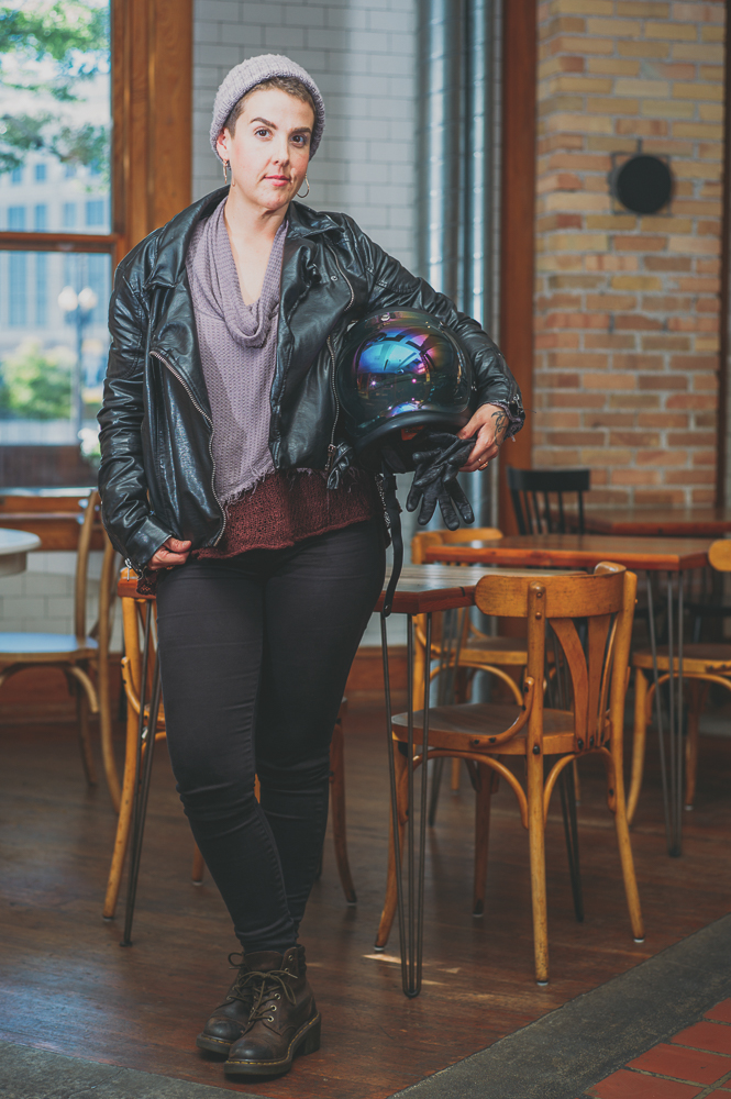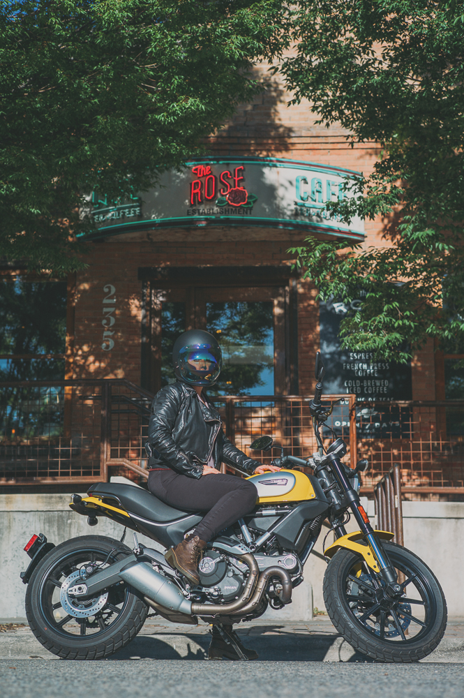 “With my old bike, I felt like I had more leering. I don’t know if things are different now—if there’s more women motorcyclists or if my new bike is different,” says Comish. “Now, less leering, and more men want to talk to me about the bike. My bike will be outside someplace, and I’ll be inside a place with my helmet, and a man will come up to me and say, ‘Is that your Ducati outside?’ and want to talk to me specifically about what this bike is like, which is way better. That’s fun—instead of gross.” Photo: Tyson Call @clancycoop