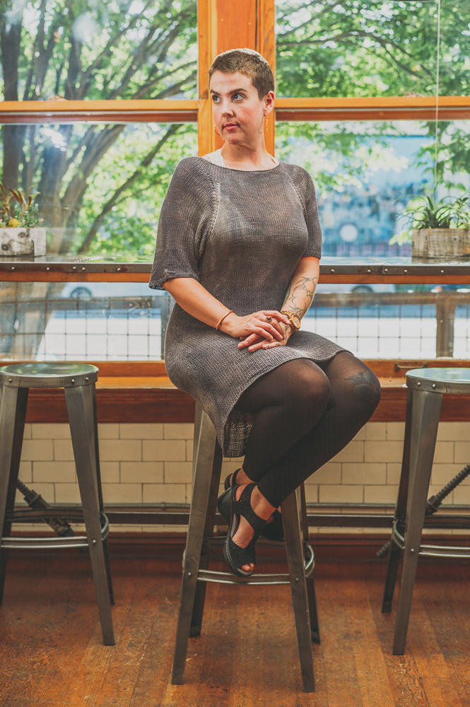 Comish knitted this dress herself. Photo: Tyson Call @clancycoop