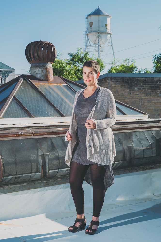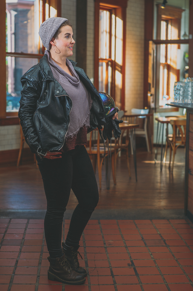 “I don’t like clothes that have brand names on them,” says Comish. “I have a pretty short, curvy body, so I try to dress in a flattering way for that, which means not a lot of boxy things. Motorcycling dictates what I wear almost all the time. I probably used to wear a lot more skirts, but now I’m always wearing jeans and boots, even in the summertime. All the time, I’m wearing jeans and boots.” Photo: Tyson Call @clancycoop