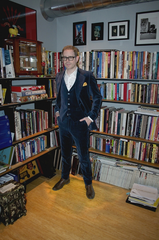 One of Jesse’s favorite pieces is a secondhand suit that he found at Decades. Originally outfitted with bell-bottoms, it fit so well that he couldn’t pass up the tempting piece of blue velvet menswear, so he had it altered to fit perfectly and hasn’t let it slip out of his possession since.