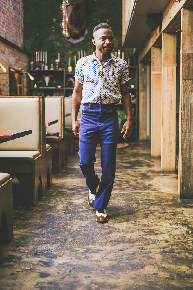 “The color palette is how I kind of think about what I’m wearing, because then I mix a lot of pattern together,” says Joshy Soul. “It could be like a windowpane, checkered blazer, and I’ll wear polka dots, and then some patterned socks, and it just all fits together.” Photo: @clancycoop