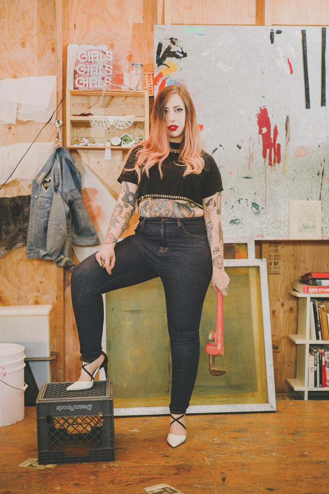 “My style was a lot more androgynous in the past, and I know that it’s confusing for people that I still identify as genderqueer and I look like this,” says Fehlauer. “I understand that that’s tough for people sometimes, but I have found that navigating the world and running my business, like especially as a ‘business bitch,’ looking very feminine and intimidating is the most successful way for me to go about it.” Photo: @clancycoop