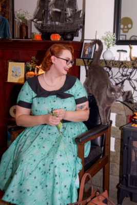 Rebecca Springer is a DIY seamstress and grant writer originally from Chicago, now living in Salt Lake City. While Springer’s love for ’50s retro fashion certainly expresses itself through her dresses, her affection for the style manifests in about every detail that it can. From her home decor to her love for Audrey Hepburn, Springer exudes retro panache. Follow her on Instagram @pixiehulk to see more of her work and fashion.