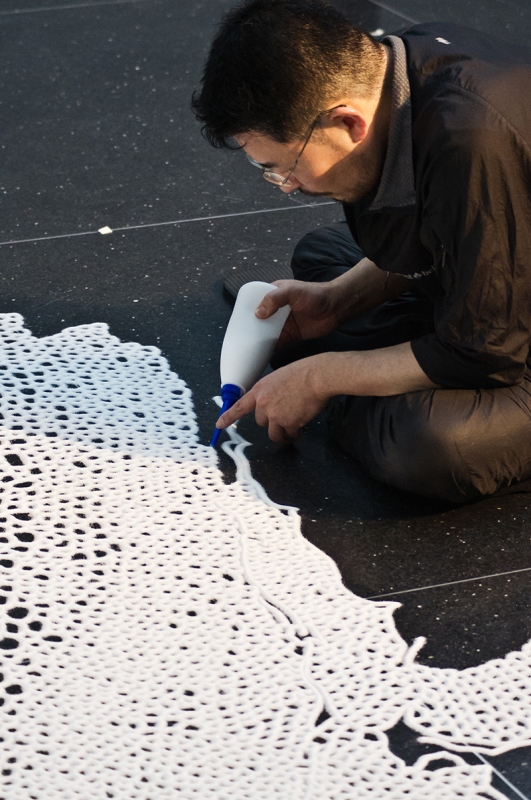 On April 12, starting at 10 a.m. the community is invited to gather up the salt used in Yamamotos’ exhibition and return it to the Spiral Jetty in the Great Salt Lake.