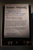 The overall set up of The Museum of Nobody had a certain intimacy—I didn’t feel as though I was at an art showing, so much as I had stumbled into somebody’s living space, and was methodically making my way throughout their home, carefully examining the components of their life’s journey, strewn about the house.