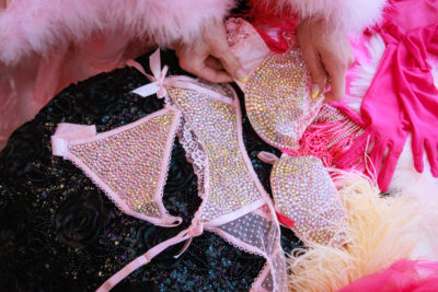 SLC Queerfest Two-piece with Robe: Scandalously tasteful and bedazzled to kingdom come, this light pink lingerie was a true pivotal point into Meredith’s performing career. “I was so nervous because I started hormones about a week before this performance,” says Meredith. Nods for this piece are inspired by the 2010 film Burlesque, but the true driving force came in the form of confidence. “As nervous as I was, I just had to tell myself, ‘Confidence is just a mindset,’ and switch it on.”