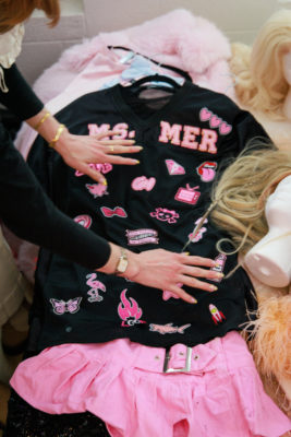 Ms. Mer’s First Performance: “I knew my first performance had to be like Avril Lavigne pop-punk,” says Meredith. With hand-sewn patches and rhinestones, this two-piece rebellious ensemble comes strapped with a jersey-type top and belt-fitted skirt. In turn, this outfit cemented Ms. Mer as a force to be reckoned with. “Using this art to transport me to this fantasy was such an iconic starting-off,” says Meredith.