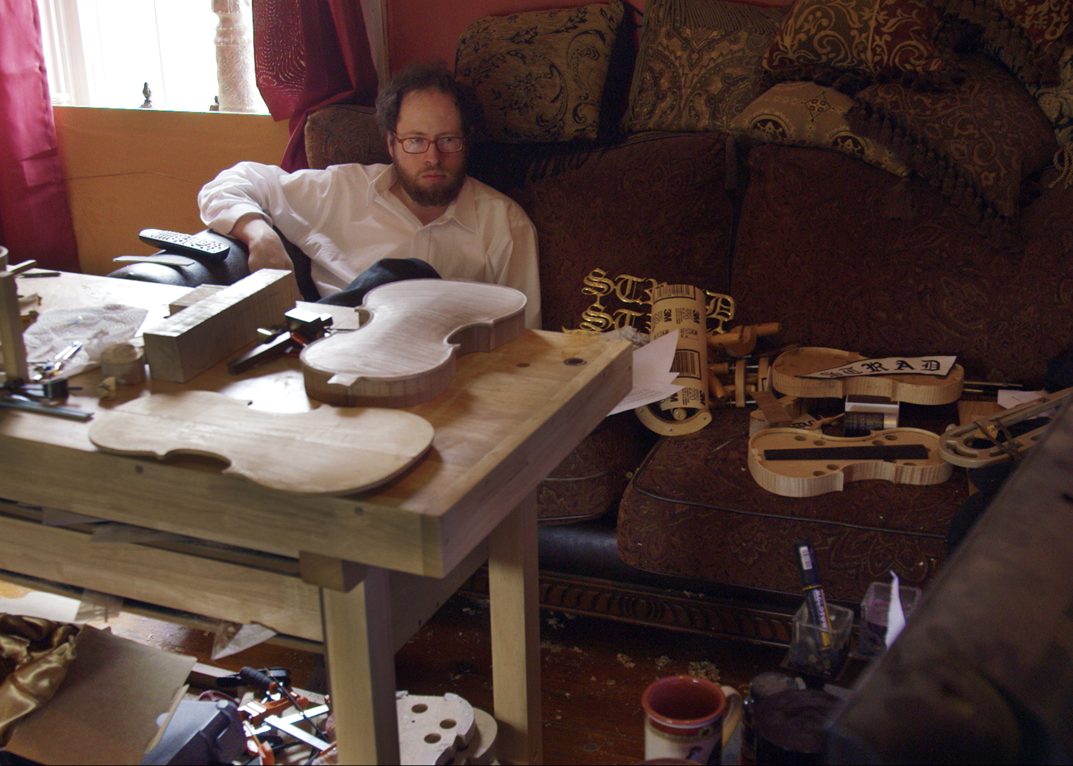 Director Stefan Avalos’ Strad Style has us cheering for Danny from beginning to end. With the exception of his active social media presence and his supportive best friend, David Campbell, Danny leads a fairly reclusive life. He talks out loud a lot, though, making for an entertaining ongoing narrative throughout the film. We follow along as Danny laboriously examines and fits the pieces of his Il Cannone recreation together, meticulously shaving the wood and chiseling away at each piece. We also follow along in other aspects of Danny’s life: when he goes on a shopping trip with his mother, Mary Houck, or when he briskly sprays his head with some sort of liquid to help thicken his hair.