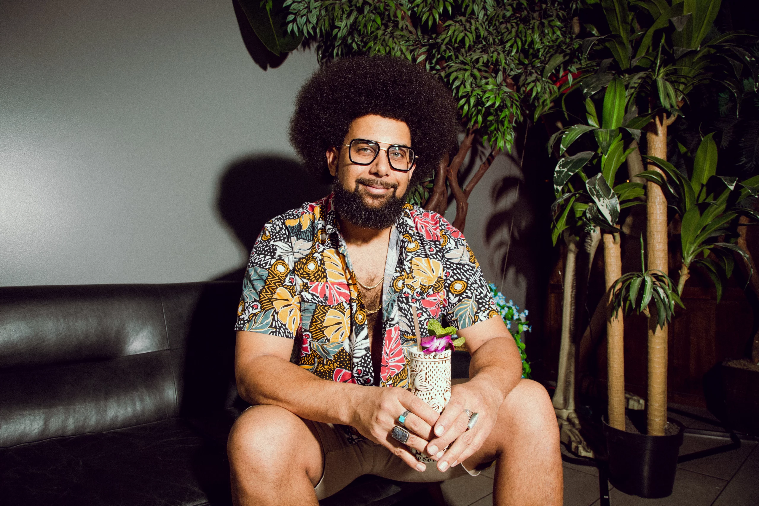 Bartending is like being on stage. I always like to look sharp before I’m stepping behind the bar. Working in tropical bars for the last eight years has taught me how to take classic aloha and blend it with my personal style. Tiki is all about escapism — transporting people to a distant tropical paradise. Style plays a huge part of creating this experience. Most nights at the bar you can catch me wearing an aloha shirt, with as few buttons as possible, accented with some gold chains and rings on my fingers. Always with a fresh pair of frames on my face.