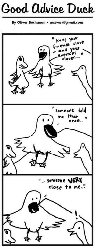 Good Advice Duck By Oliver Buchanan October 2, 2014 SHARE THIS: Facebook Twitter Comics Words and art by Oliver Buchanan. Photos: Your donations allow us to share underrepresented stories for FREE! Donate $10 Choose Amount