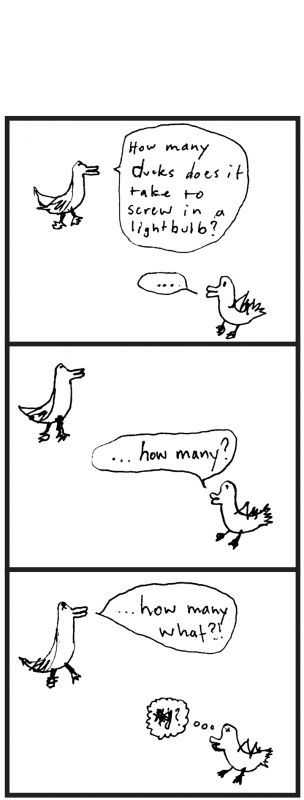 How many ducks does it take to screw in a lightbulb? Oliver Buchanan Comic: Forgetful Joke-Telling Duck By Oliver Buchanan March 5, 2015 SHARE THIS: Facebook Twitter Comics Photos: Your donations allow us to share underrepresented stories for FREE! Donate $10 Choose Amount