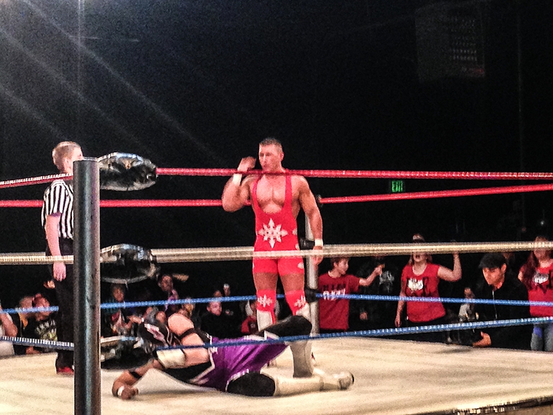 Hudson Envy is a recent import from Texas, and I’ve gotta say, I’m thrilled to see the UCW-Zero women’s division getting this kind of diversity and talent. Ultimately, Envy was an excellent, loose-canon heel complement to Lacey Ryan’s technical flair, screeching like an abandoned feral animal and abandoning the ring at every opportunity. It shouldn’t come as any great surprise that Lacey won this one, triggering a “that was awesome!” chant after a masterful dropkick. Another great match with some new faces: Let’s hope we see more of this!