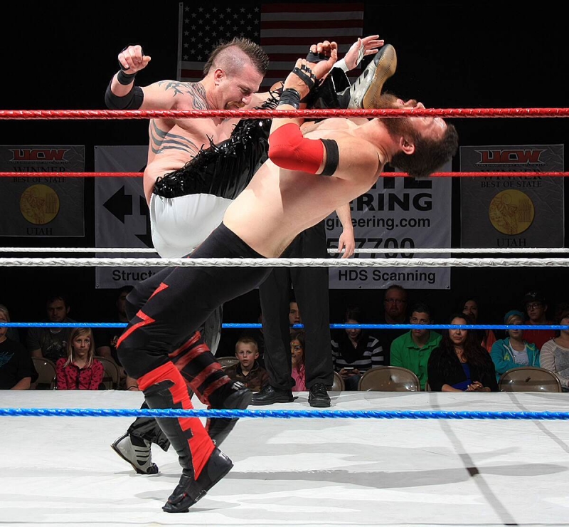 The setting was perfect thanks to the great taped vignettes between matches, an enthusiastic crowd (shout out to the s-mark middle schooler sitting in the front row! The dude knew his history!) and ring announcer Josh Damien’s joke about getting so loud, "even the Dark Angel can hear it." (It’ll make sense later). Yessiree, it was a bang up TV taping for the best pro wrestling promotions in all of Utah, UCW-Zero!