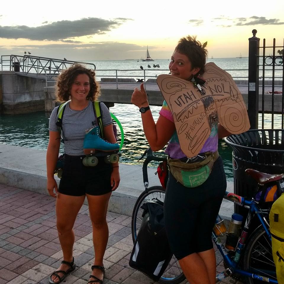 Erika set out from Salt Lake in September, aiming to visit food co-ops around the country before returning home to start one. I called her while she was relaxing in New Orleans, gardening at a squat in the 9th Ward. She’s a young woman with bright round eyes and an infectious smile, solidly built, tan from farming and biking, with an ever-changing spiky spray of hair. She acknowledges that she’s not your average long-distance bicyclist. But she maintains that biking is queer, femme and relevant as hell.
