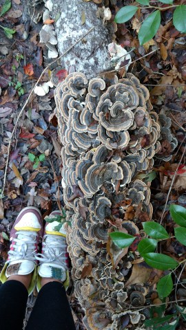 She dishes out a bit of mushroom theory: The majority of a mushroom is mycelium, the mushroom’s roots. The ten percent that we can see and eat is called a fruiting body. When you pull apart an old stump, the mycelium are the hair-like, white crystals running amok, decomposing the wood. “That’s what connects the entire forest, and the entire underground of the world,” she says. “When there’s a spot that’s conducive to reproduce, then they put up little fruiting bodies, and that’s what you see when you see mushrooms.”