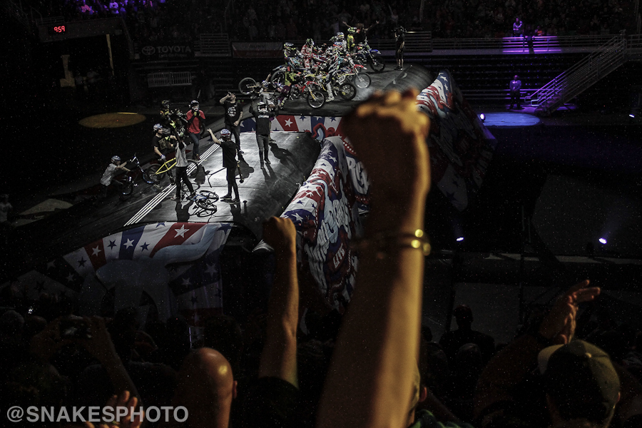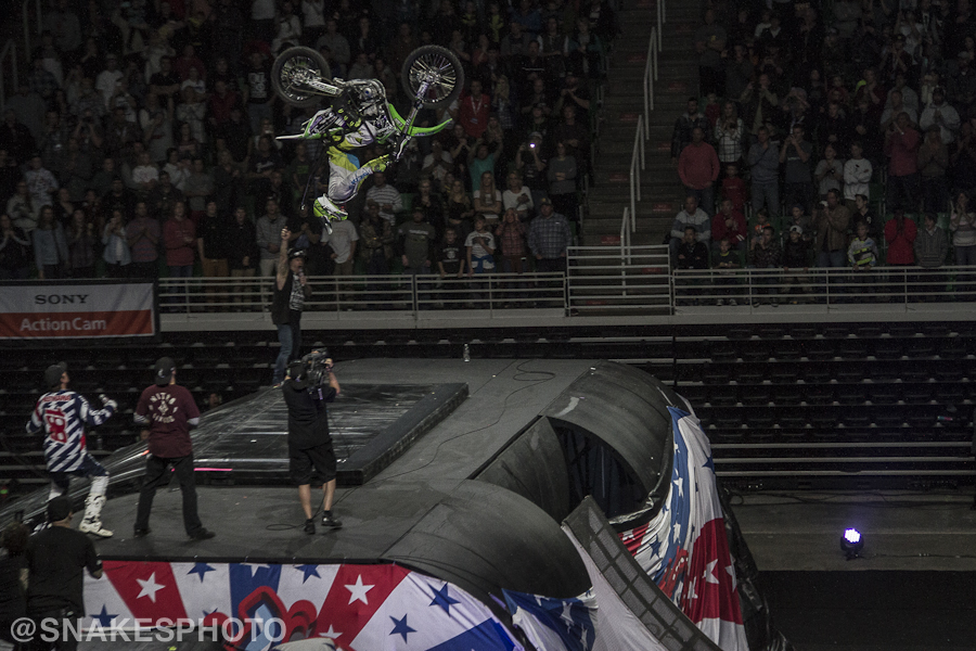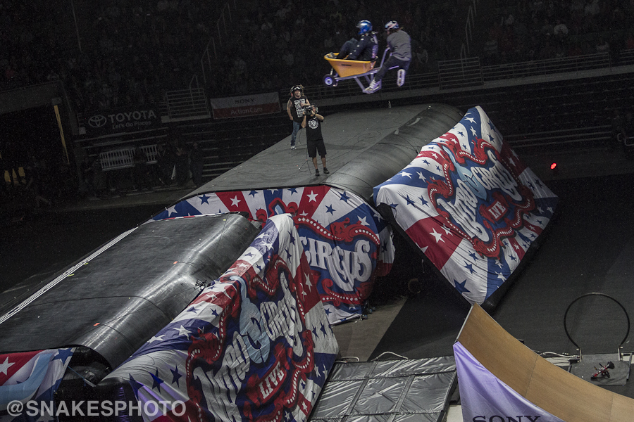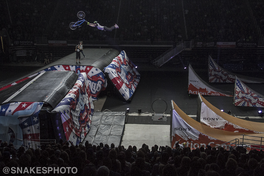 The last hour of the show was all about big air and bigger tricks, with all of the riders testing the limits of their skills. James Foster flawlessly spun a triple backflip while Gavin Godfrey sent trick after trick on mountain bikes and trikes to please the crowd. Whatever trick was going down, getting upside-down was standard for these guys.