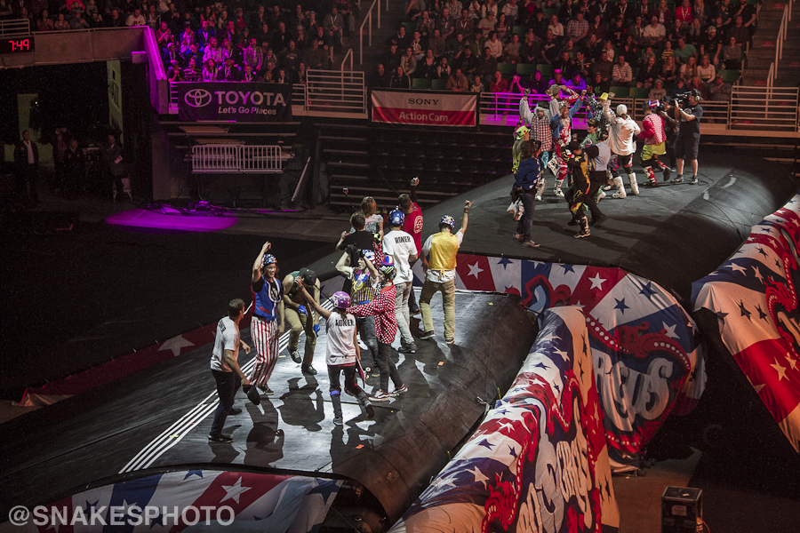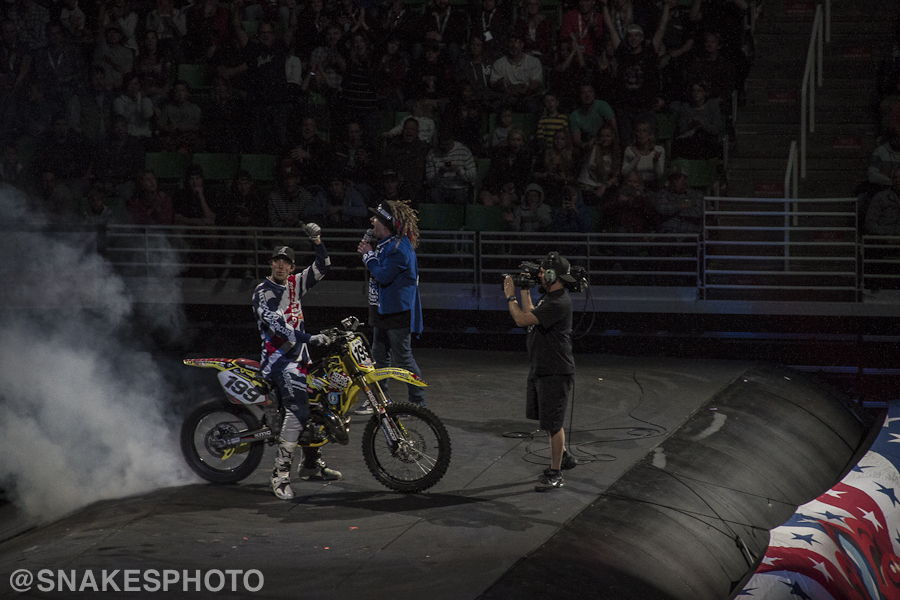 Another heartfelt moment of the show was Bruce Cook showing his love for the Nitro Circus and the family that he feels within it. Bruce was paralyzed 23 months ago while trying to land a double front flip on an FMX bike at Nitro Circus. After a long and tough road to recovery, Bruce was back to ride his modified bike and backflip it for the SLC crowd. His story and undeniable smile lit up the arena and gave way to an inspirational and tear-jerking performance as he went inverted on the same machine that had put him down almost two years prior.