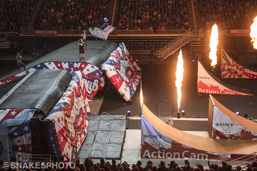 After the tribute, the show started off with a bang on the mega ramp with boards, bikes, roller blades and even scooters launching into the air pulling more insane stunts with every drop. Backflips seemed to be a staple, and combining tricks with a backflip seemed to also be second nature. Among the most impressive tricks were Weasel pulling a backflip under flip on a scooter and Jersey’s own Brandon Schmidt lacing a 720 Japan Air on a snowboard on wheels.
