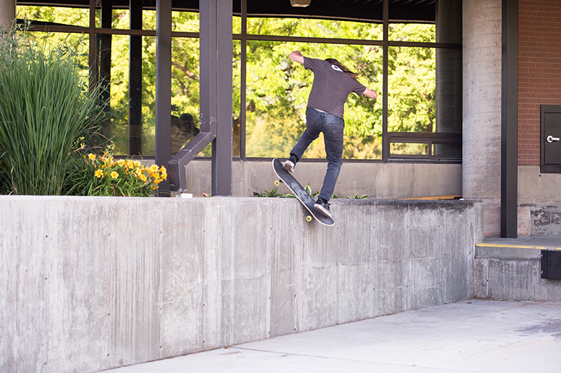Orton has seen the local skateboarding community change a lot from its humble beginnings. “Lots of spots have come and gone,” he says. “It’s a canvas. It’s cool to get out of town and go skate other stuff, but I definitely dig Salt Lake…. A spot dies [and] a new spot gets made.” Over the years, Orton has been involved in more than just the “skateboarding side” of skateboarding. Recently, he has helped Mark Judd, owner and operator of After Dark Skateboards, get the company going, occasionally lending a hand in the shop and managing the budding skate team. “Whoever’s interested in skating the best boards out there, hit up Mark,” he says. He tells me that After Dark will also be working on a video in which Orton will have a part. In addition to the AD video, Orton plans to film a part for the new Weast video. In the meantime, you can catch Orton on Sundays, possibly skating the Public Safety Building on 300 East (a new favorite of his).
