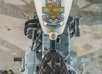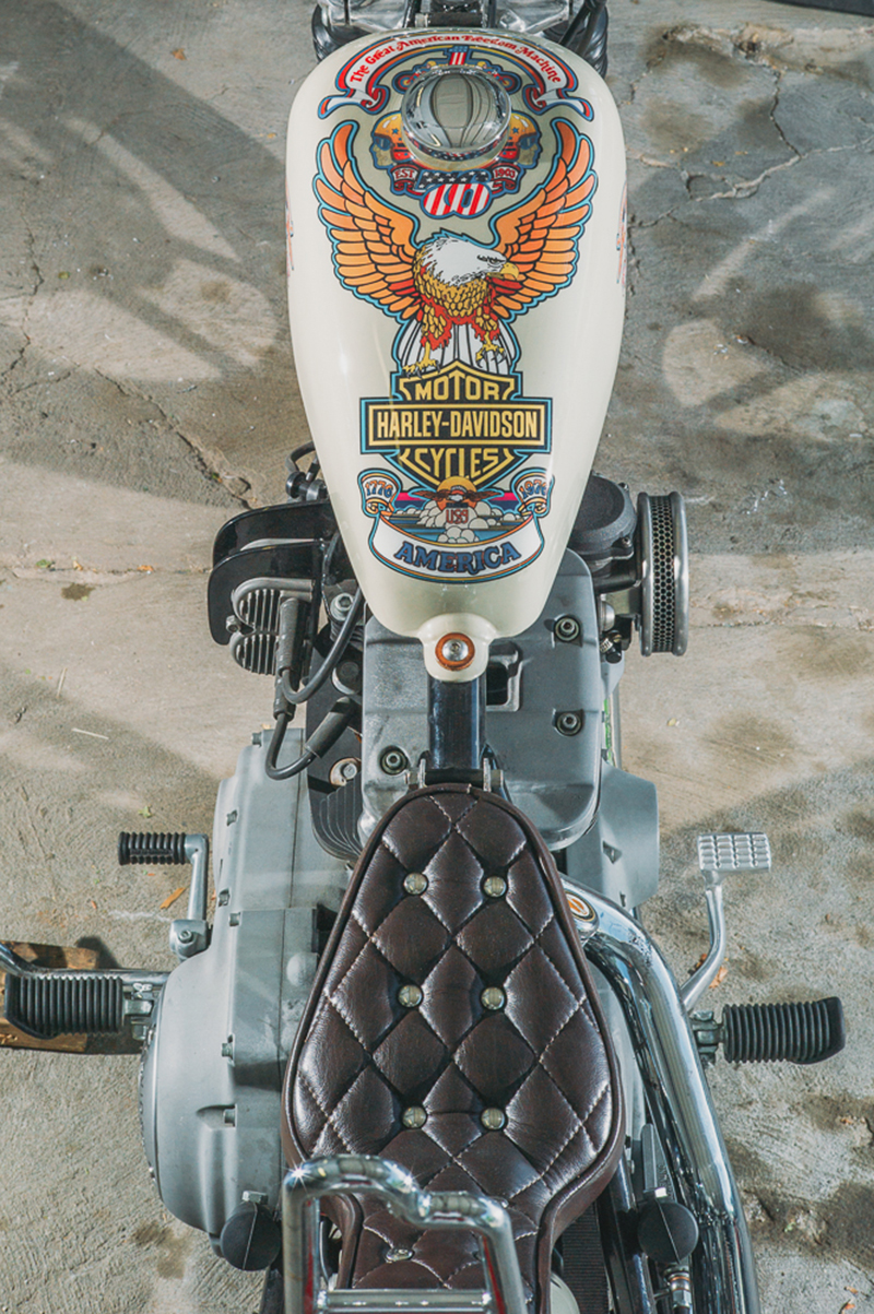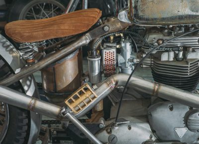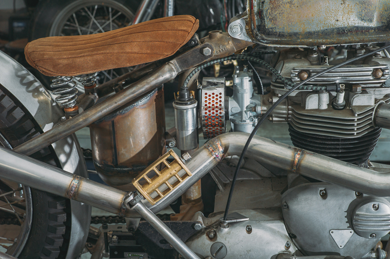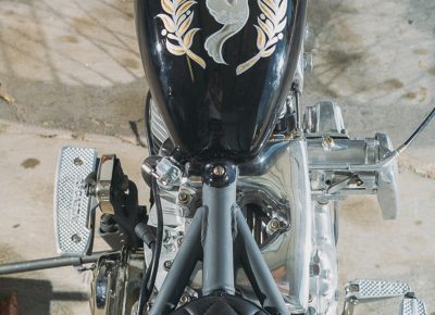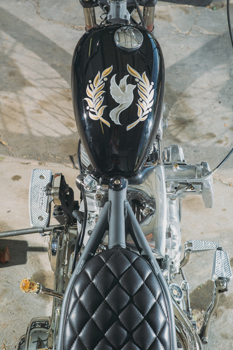 Looking at Hebard’s builds, one can see the amount of attention to detail he puts into every bike. Because he takes on only a few projects a year, he puts an immense amount of time into every build. He recently showed his work at Born-Free Motorcycle Show. “My girlfriend, Ady [Meyer]—she doesn’t really like the couple months before Born-Free, because every night, I’m in the garage until 3 a.m.,” says Hebard.