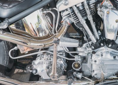 Hebard takes customizing seriously, not content with bolt-on parts that can be bought off the shelf or from an online catalog. For one of his latest builds’ foot pegs, he designed them first in CAD, 3D-printed them and then had them cast in aluminum, resulting in a completely one-off look. In his garage are bags of beer cans that he is saving to melt down in order to create parts for a future build.
