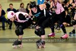 The bout continued in a similar fashion, SCDG continued to score big, JCRD continued to play hard, push their limits and fight to stop the Sacred City Sacrificers. The first jammer from JCRD to gain lead jammer and put some points on the board for Junction City was Pickles. She fought and broke through the tough defense of the SCDG, met by huge cheers from the crowd.