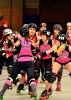 The Molly Morbids had some seriously unbeatable team strategies, though most of the time, they had the pivot or another blocker skating backwards in the pack. Then, they “welded” themselves together, creating a nearly-unstoppable wall. In fact, on one of the jams, neither jammer broke through for a full lap. Finally, Hip Knock-it Therapy from the Morbids broke through and called the jam off quickly when she knew she couldn’t get more points.