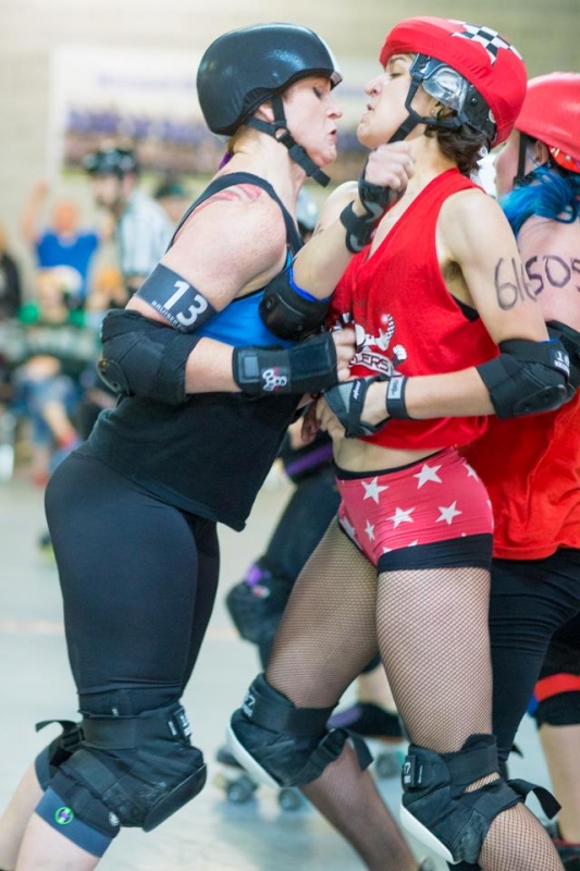 This game is what roller derby excitement is all about. The teams were very evenly matched and the score stayed very close for the entire bout, both teams displaying great strategies, strong players and great endurance.
