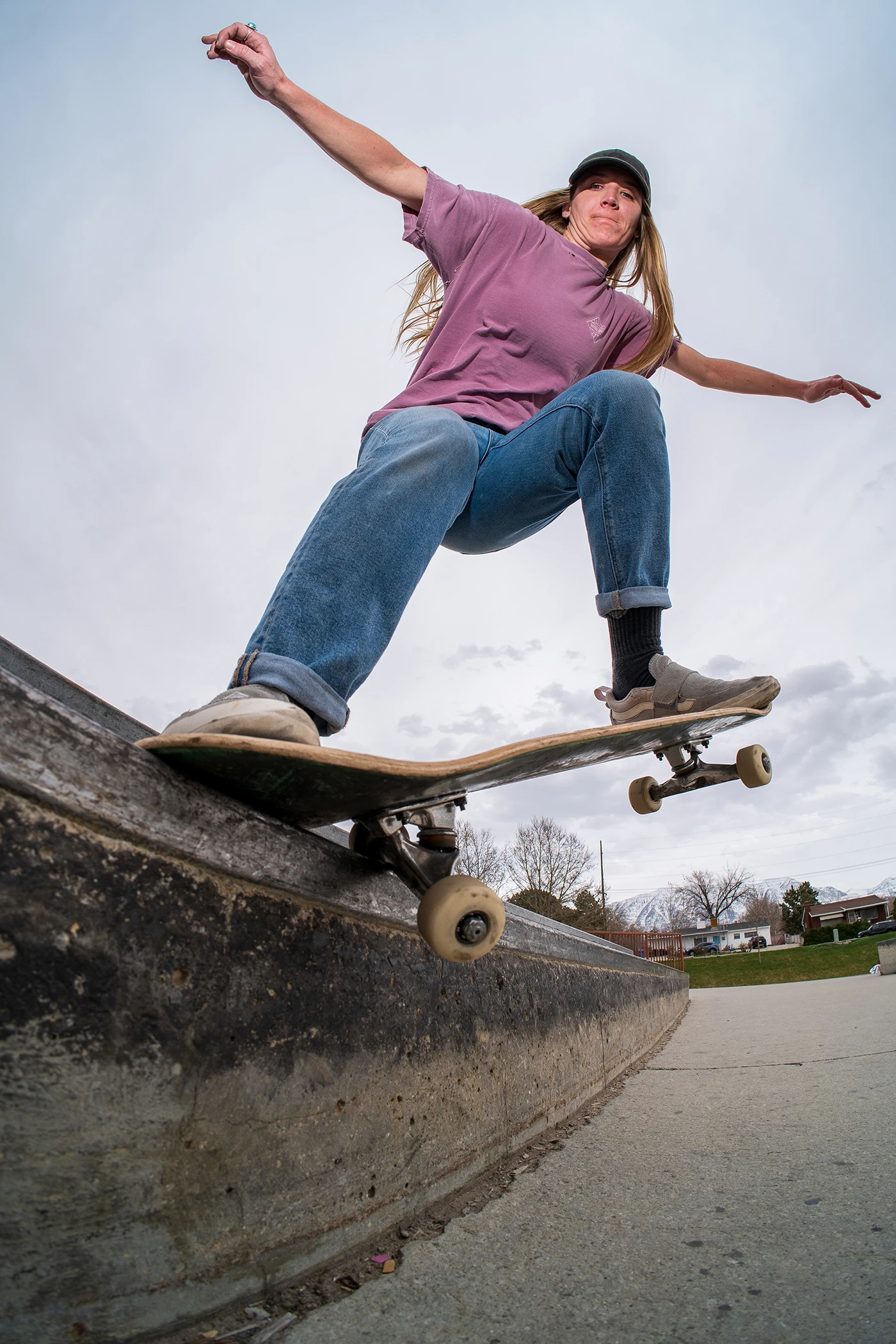 If you skate at the Orem Skate Park, you’ve probably seen Cassidy Andersen pushing around. Andersen’s love of skateboarding began at eight years old when a cousin sparked her interest in the sport and inspired her to buy her first board. She quickly fell in love with the freedom that skateboarding brings. When Andersen wasn’t outside on a board, she was inside watching St. George skate shop Lip Trix videos and the X Games. Skateboarding also led Andersen to her husband. “We didn’t go on a normal first date—we went to the skatepark,” she says. Now a mom of two girls aptly named Ollie and Banks, she’s a sponsored ripper who enjoys skating for the challenge, the community and the pure love of pushing.