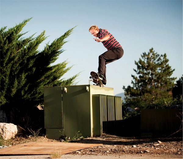 Hart: Dave McDonald. I don’t even know if he counts because he just lived here for a couple months while he went to school, and he’s gone now. But he filmed his part in our video in just a couple months after not having skated for a couple years. He doesn’t care if there are people kicking us out, if his body’s too sore to move or if it’s too dark to see what he’s doing, he’ll go for any trick. He’s 27 and married, but he has the motivation to skate like a 15-year-old. He’s really fun to skate with, and he’s a super cool guy to hang out with.