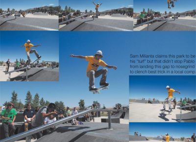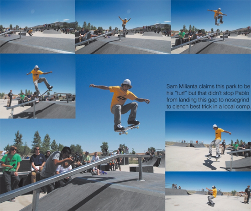 Pablo Gonzales is from St. George, the opening portal from Arizona and Nevada into the land known as Utah. It’s a border town with a knack for shitty asphalt, curbs in front of gaps, and “almost a spot” parking spots. After a two hour-ish ride from Vegas, you get crapped out of Arizona via “The Gorge” and there sits St. George before you like a big cheesy greeting card, gleaming in the southern sun. Venture further into town and you’ll come across a flamboyantly colored fun center, but more important is what sits next door: the St. George skatepark. Home to some major kookery for sure (we’re not mental or anything so don’t be afraid), this is where I first met Pablo some seven years ago.