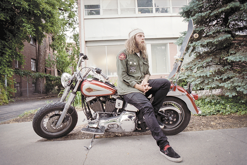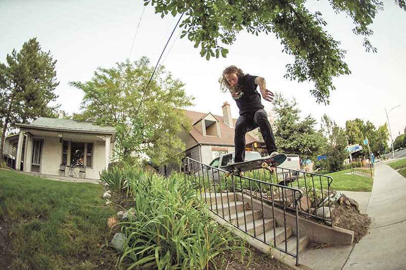 I’ve heard the name TCOY for years, and I’ve even bought some boards from him at Blindside in the past, but I’ve never actually known TCOY (aka Troy Coughlin). A fellow Californian by birth who screams SLC, TCOY got his start amid the rolling plains of Indiana, only to make the move to Utah a mere four years later. Regardless of his upbringing, he’s a rad dude and he rips, both on the drums and on the board. He skates just like you think a tattooed guy with a big beard would, too—going for it on risky spots, like Brian “Slash” Hansen or something, but cooler because he plays music too. When it comes to his skating, we’re talking 50-50 front shuvits on sketchy uprails followed by equally sketchy hill bombs, just like a bearded man would. And the music? Straight rock n’ roll—with a dose of psychedelia. So, if you haven’t heard of Max Pain and the Groovies, the band in which TCOY slays the drums, now’s a good time to toss on a track. A double threat, TCOY appreciates the greatest gifts to earth: skateboarding and music.