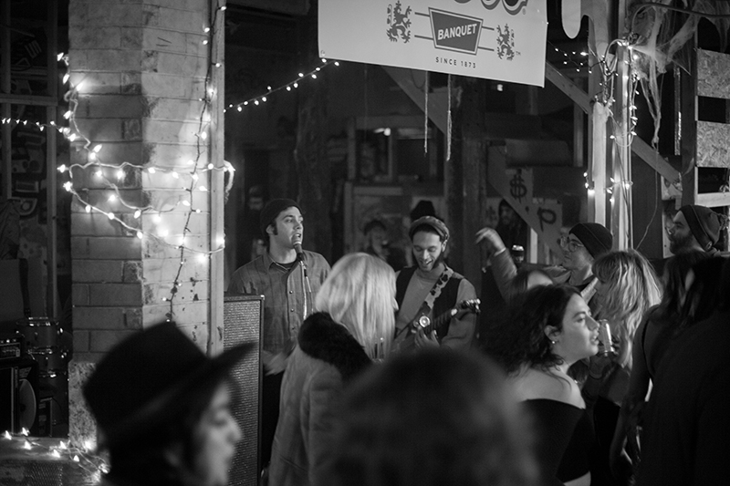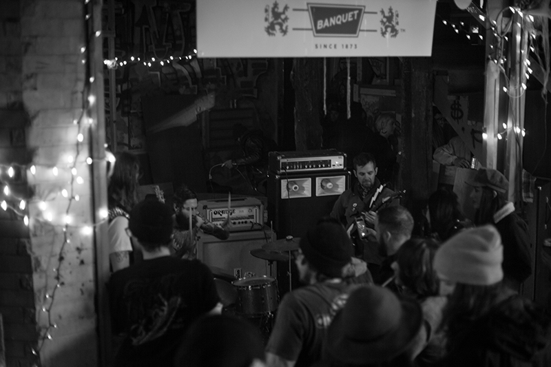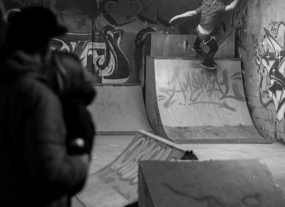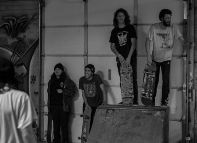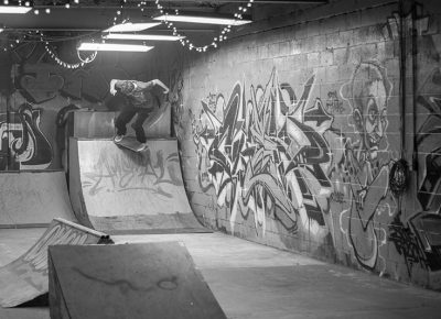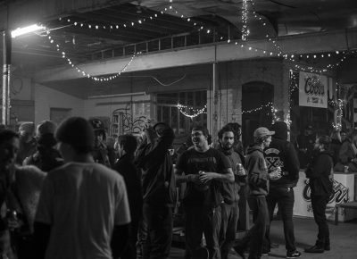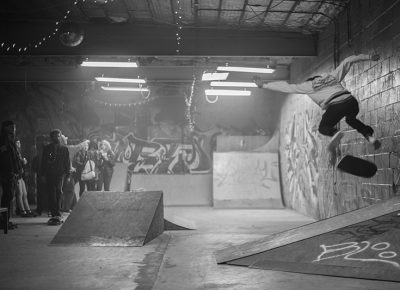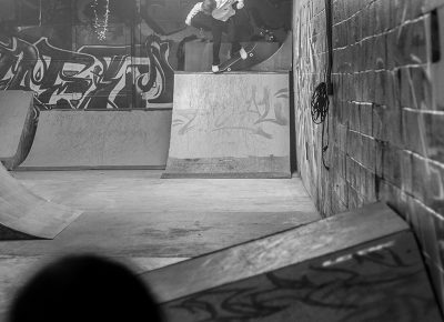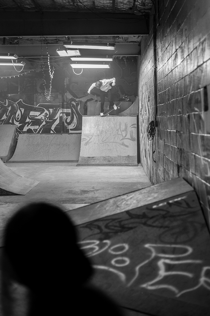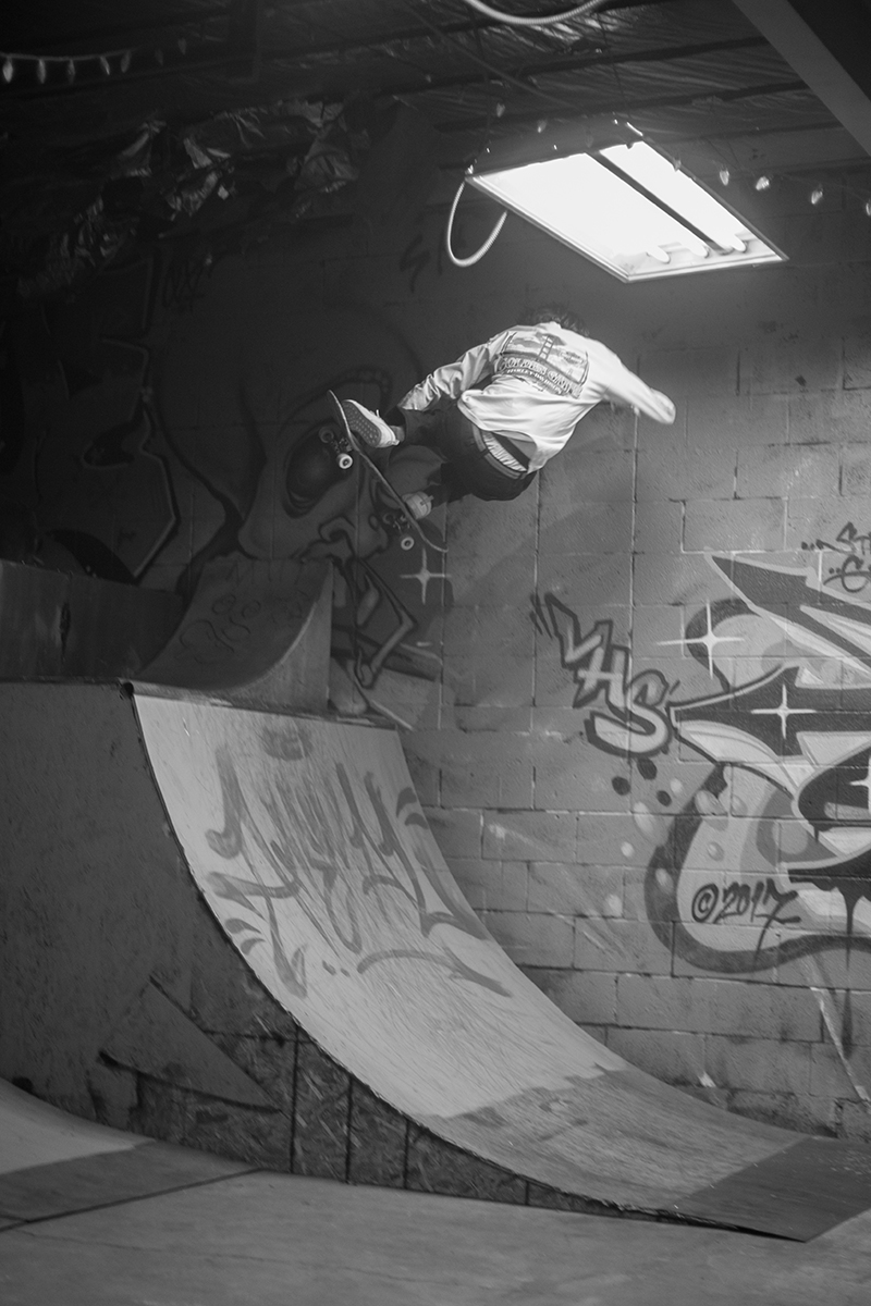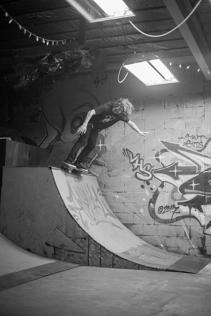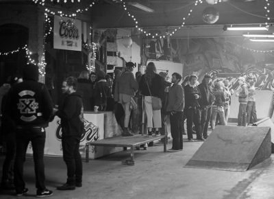 The Skate Warehouse Rebuild The Ramps and Roof Party was on a chilly January night in SLC. As with any normal skate jam/concert, you pull up to a warehouse, walk through the door and walk into a building filled with smoke, loud music and good times happening in every direction. The coolest part about the whole thing is the skatepark inside being shredded by some local rippers—flying out of the quarter pipe at the end of the warehouse, occasionally hitting the lights hanging from the ceiling. All around, it was a kick-ass party with kick-ass people, and I really hope they end up putting another one together soon. The gallery below is a showcase of all the festivities that happened at the