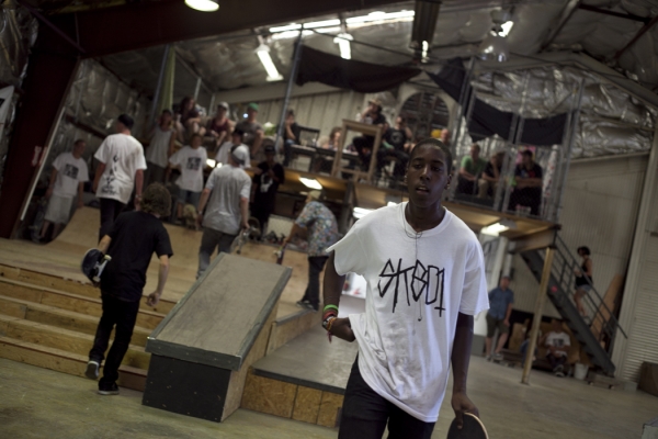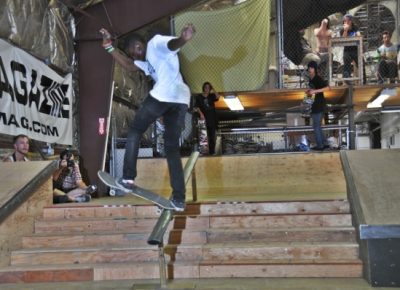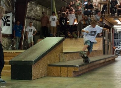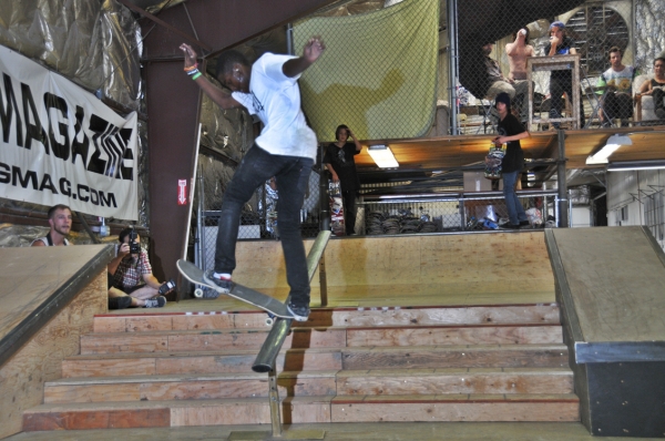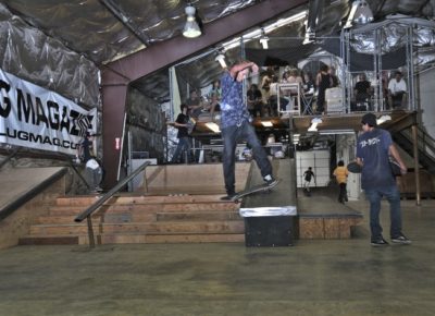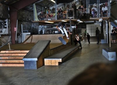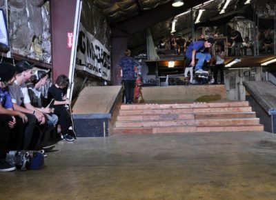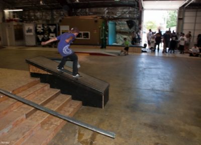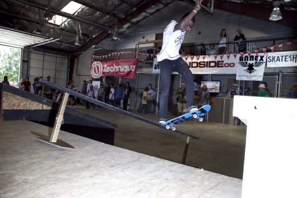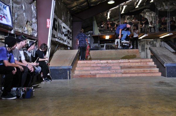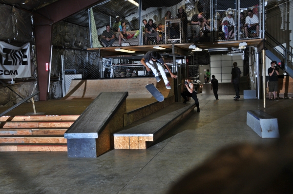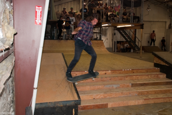 The crowd this year may have been our most diverse to date with tons of fresh faces, young and old, showing up to skate or show their support. Our all-star cast of judges, Jared Smith, Dirk Hogan and Panda Pauley, had prime seating on the balcony overlooking the entire course. As the spectators shuffled into the warehouse and the music blared, it seemed the stage was set for an epic afternoon, so our MCs Eric Hess and Billy Ditzig grabbed their mics and kicked things off.