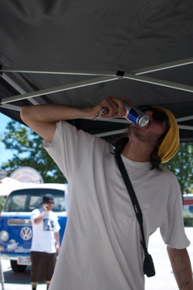 As the time grew ever closer to 3 p.m., skaters gathered around the registration table manned by the beautiful ladies of SLUG’s marketing team to get in on the action. Quiksilver was holding it down at their booth slangin’ more than 10 skate decks via a game of Spin-the-Bottle SKATE, and generally keeping people happy with tons of other free swag.