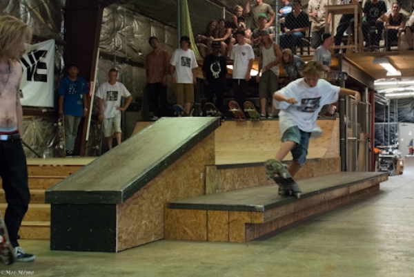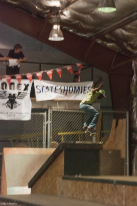The kiddies were the first to take to the course and as usual, each tre-flip, backside flip off a ledge or feeble down a handrail landed by a 12-year-old brought me back to the realization that I will never ever be as good a skateboarder as these kids. For the Am division, Colton Anderson took third while brother Caden Anderson snagged himself the second place spot, but it was Jorge Martinez who took enough risk and landed enough bolts to take first place and mountains of fame and glory.