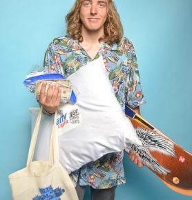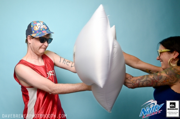 The Open division saw a stack of new faces mixed in with some familiar ones, and neither disappointed. Caleb Flowers, no stranger to Summer of Death contests, showed up with some seriously stylish skating and got a lot of cheers out of the crowd. Ozzy Henning, emerging as one of the smoothest and most versatile skaters around, landed a slew of technical tricks down the stair set, and he made it look easy. Best Trick was a tough pick because there were so many bangers being thrown down the stair set, but it was Jordan Brown who sacked up and landed a tre-flip 50-50 down the hubba with textbook precision to take home the trophy. Ozzy Henning received the Honorable Mention for his remarkable performance. Taylor Mineer snagged third place overall. Noe Rodriguez came out of nowhere and killed it in the final round to take second place, and it was none other than Logan Summers who skated just a little bit better than everyone else to take first place, which awarded him a complete set-up, cash prize and tons of other prizes from our sponsors. Last but not least, Israel West, another Summer of Death regular, deserves a special shout out for winning the pillow fight and proving that he has no fear when faced with swinging goose feathers.