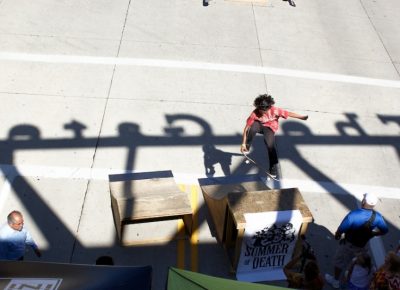 Some people believe skateboarding to be an art. Others would say that jumping around on a wooden toy is a monumental waste of time. I say, every minute you are skateboarding is a minute that you aren’t stealing an old lady’s purse. In celebration of not making an octogenarian your prey, the 14th annual Summer of Death Presented by Scion had its first contest of the year on Saturday, July 20, paired with the Urban Arts Festival.