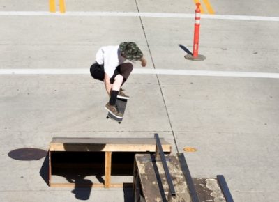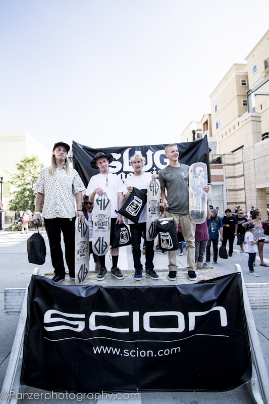 Eric “Spock” Uquillas, the founder of Spock’s Skate Camp, brought out some of the younger kids to compete—you could tell who they were because they were wearing helmets and elbow pads, and were about three feet tall, as some of them looked no older than 5 years old. Longtime SOD vet Dino Porobic landed an ollie and an early grab back 180, securing him a Third Place position. Jordan Mohr was skating like a man with his clean backside flip off the kicker, which landed him into the Second Place position. Another past contestant, Jorge Martinez, was skating the course well before the contest started.