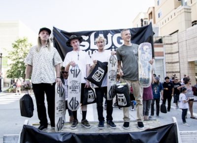 Second Place went to Jordan Brown, who did a backside lipslide on the flat bar, nollie 360 off the kicker and a kickflip over the box. Seipert landed the shuv-it he was trying earlier and won Best Trick for a smooth backside smith to back 180 out. Finally, Gabe Spotts landed a tre flip, frontside flip and a nollie backside heelflip off the cheese wedge. These tricks secured Spotts, who was recently featured in SLUG’s July issue, the First Place position, right in front of one of his sponsor’s booths (Board of Provo).