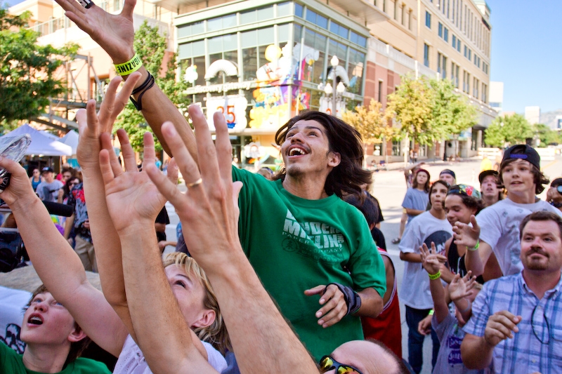 After the contest, product was tossed from the second level, where even more spectators had congregated, and into the hands of the people who stuck around until the end of the competition. Along with the usual free decks and swag, Goal Zero handed out solar-powered panels and speakers.