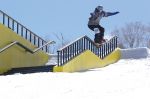 The wizards had declared battle. All that was left now was the hunt for a worthy proving ground in which these youthful skiers and snowboarders could compete. Snowbasin’s Terrain Park Manager Tim Eastley was appointed the important task, and along with his terrain park staff, Eastley was able to construct a world-class arena on-hill and slightly offset from Snowbasin’s Earl’s Lodge. Local artist Dusk painted the spellbinding fun boxes, and wizard-manufacturer Tommy Dolph created an army of sorcerers to stand as sentries along the course. In the mix of the wizards were two 25-foot down boxes, a gap to 20-foot wizard wand, a cheese wedge box jump and a 30-foot kicker for good measure. The highlight, of course, would have to be either the quarter pipe feature, located at the bottom of the course, with multiple plans for attack, or the plaza feature, which is a 100-percent replica of the famous Burlington High School stair-set in Vermont. This gargantuan feature brags one flat-to-closeout rail followed by an immediate 15- to 20-foot drop. To the right of the flat rail is an accompanying 10-flat-10-stairset featuring one down-flat-down kinked rail to the far right, and its twin anchored to the wall as a “creeper” ledge on the far left.  This is all mumbo-jumbo in “people talk,” but in the world of immortal wizards and action sports, something this big can only be described as “high-risk.”