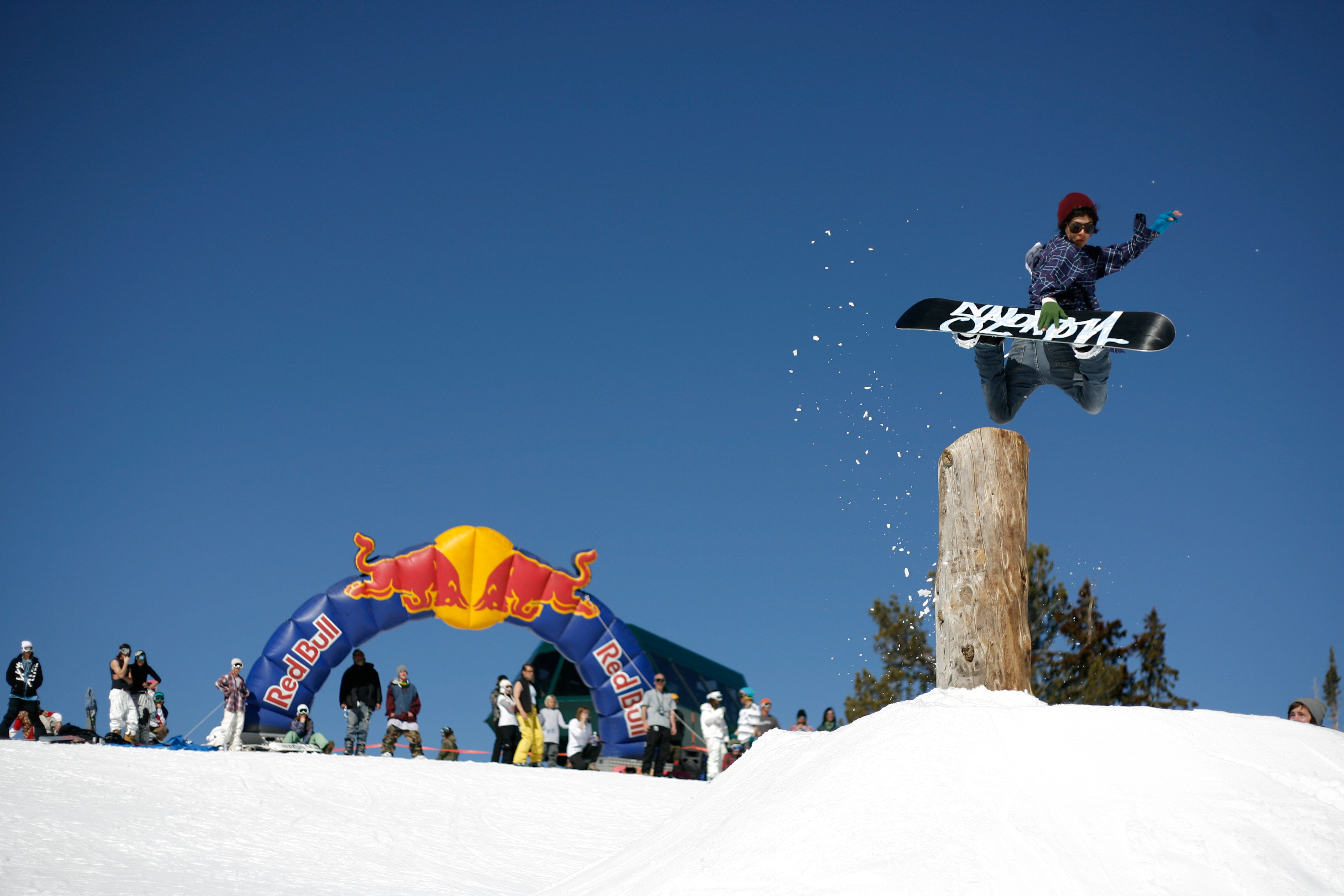 By noon, fueled by Rebull, flapjacks and hot dogs grilled from the boys from Celtek, men’s boarders 18+ got their half-hour to tackle the course. Josh Palmer walked away with a helmet from Union Board Show for best crash after catching his front edge on the wooden stump at the top of the course. He was allegedly knocked out by the crash. Neil Scheuerman fast planted the stump and walked away with an OGIO backpack full of goods donated by the sponsors. By this time the competition and contestants were heating up, who knew flannel shirts would be so fucking hot?