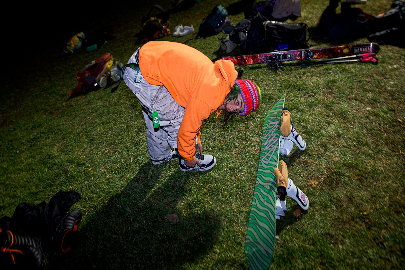 One men’s qualifying skier, Sean Jensen, had garnered attention in his fully lime-green getup. He was stoked over the clear weather for day two, since Saturday’s rain had softened the snow. The competition was wild, and the crowds kept cheering on their favorites. One boarder, Iris Pham, caught attention with her purple pants and buttery moves. Another, Jen Picarazzi, kept throwing the same trick to try and land it, just because the crowd told her to. When the crowd chanted for one skier to throw a double backflip and he didn’t land it, people around me became upset that the hill wasn’t big enough for riders to get the speed and space they needed to really show off. Timo Berg got back up and made a few more runs, which made everyone cheer louder.