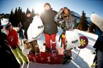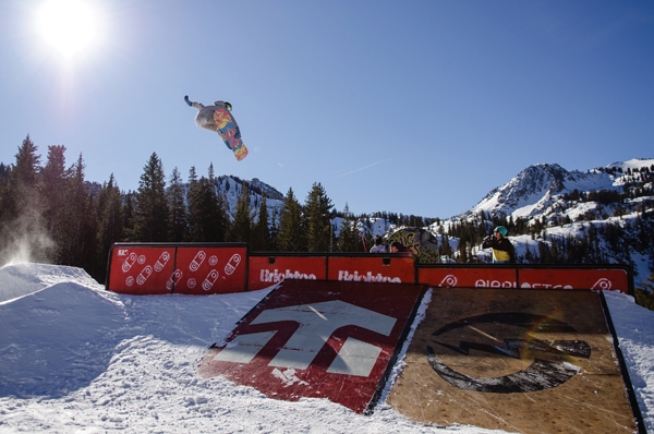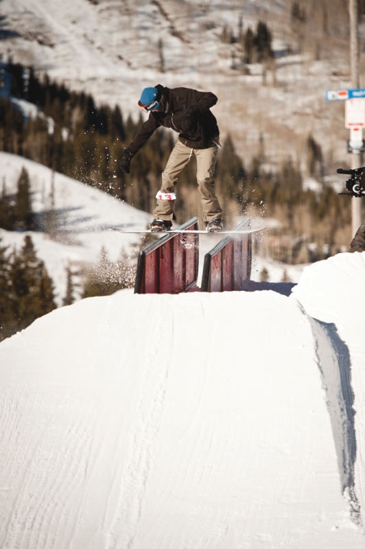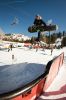 After a while, some of the snowboarders started breaking out their slew of one-footed tricks, which are always fun to watch. A few tried foot plants on the tombstone and spins into the wall ride feature, but it was snowboarder Andrew Aldridge who came away with the best trick of the day with a one-footed boardslide on the double rail set with his back foot hovering in the air. He walked away with a new board from RAMP for the trick.