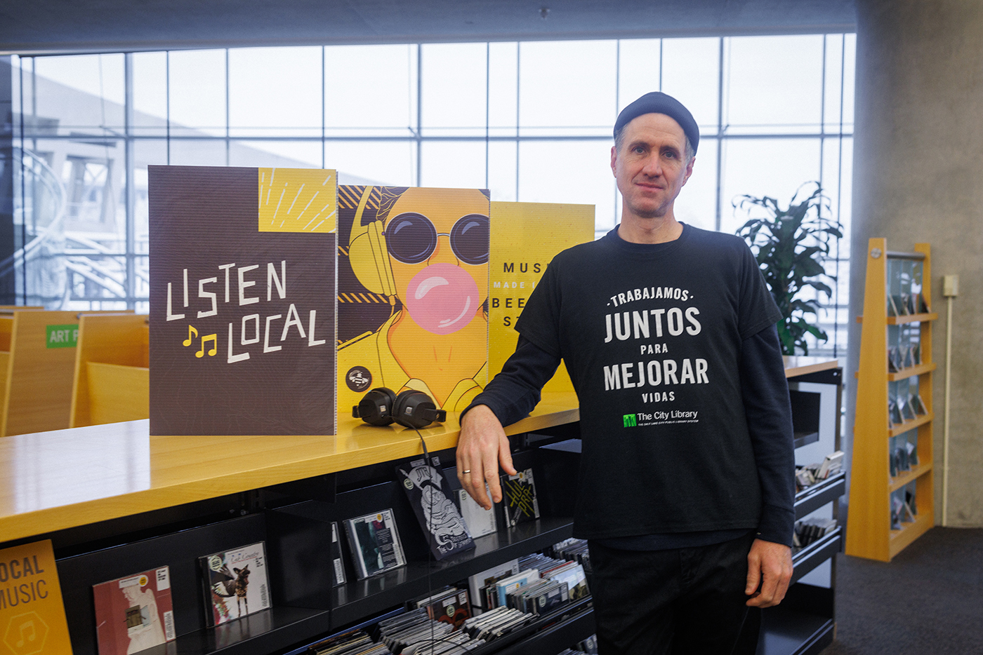 Anyone in Salt Lake can tell you the value of our local library. Beyond being a free repository for books, the Salt Lake City Library is full of passionate people who are eager to uplift others in the community who share their interests. Jason Rabb, a librarian at the 400 S. branch, is particularly noteworthy in leading the charge to bring local music to the forefront of the library’s archival and cultural efforts. Rabb, a librarian of 11 years who started as a shelver in 2010, works both as a day-to-day librarian answering patrons’ general questions and as a coordinator of some of our community’s most valuable programming, including 12 Minutes Max and HUM (Hear Utah Music).